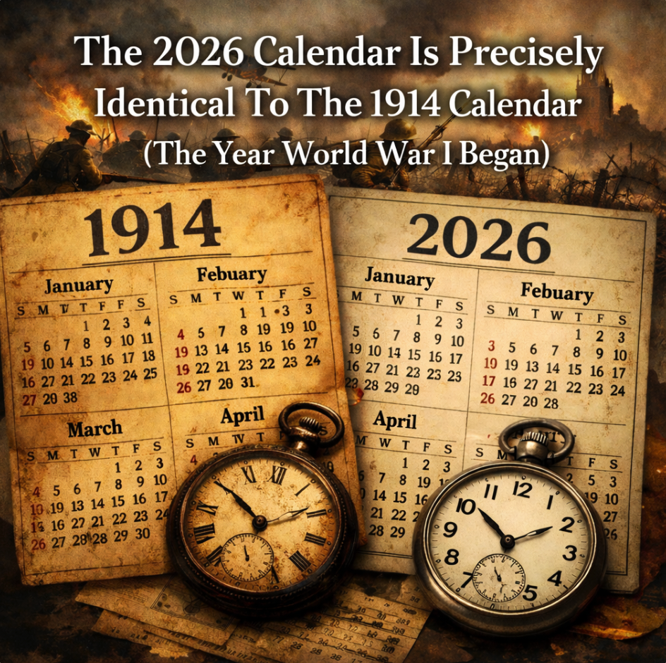 El calendario de 2026 es exactamente idéntico al de 1914 (año en que comenzó la Primera Guerra Mundial).